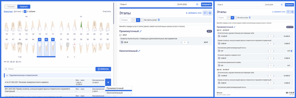 3. По умолчанию указаны 2 этапа плана лечения: Промежуточный и Окончательный.