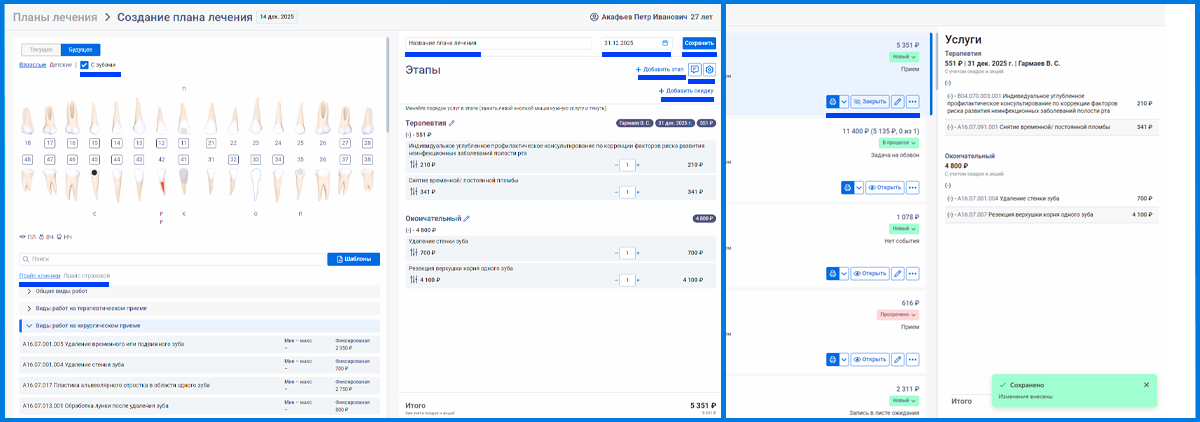 5. В конце нажимаем на кнопку «Сохранить». План лечения создан!